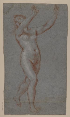 Fecha: ca. 1680 • Nº Inventario: D-1418 • Medidas: 475 x 275 mm • Técnica: Papel gris azulado. Sanguina y toques de clarión.