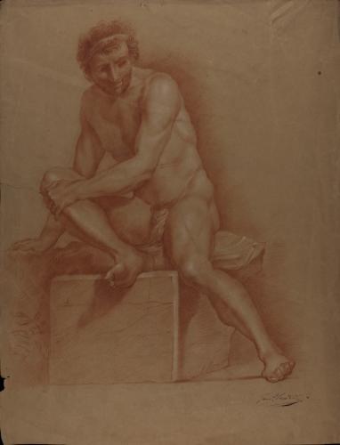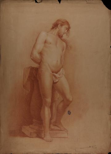 Fecha: ca. 1850 • Nº Inventario: P-1284 • Medidas: 630 x 457 mm • Técnica: Papel avitelado marrón. Sanguina y toques de clarión.