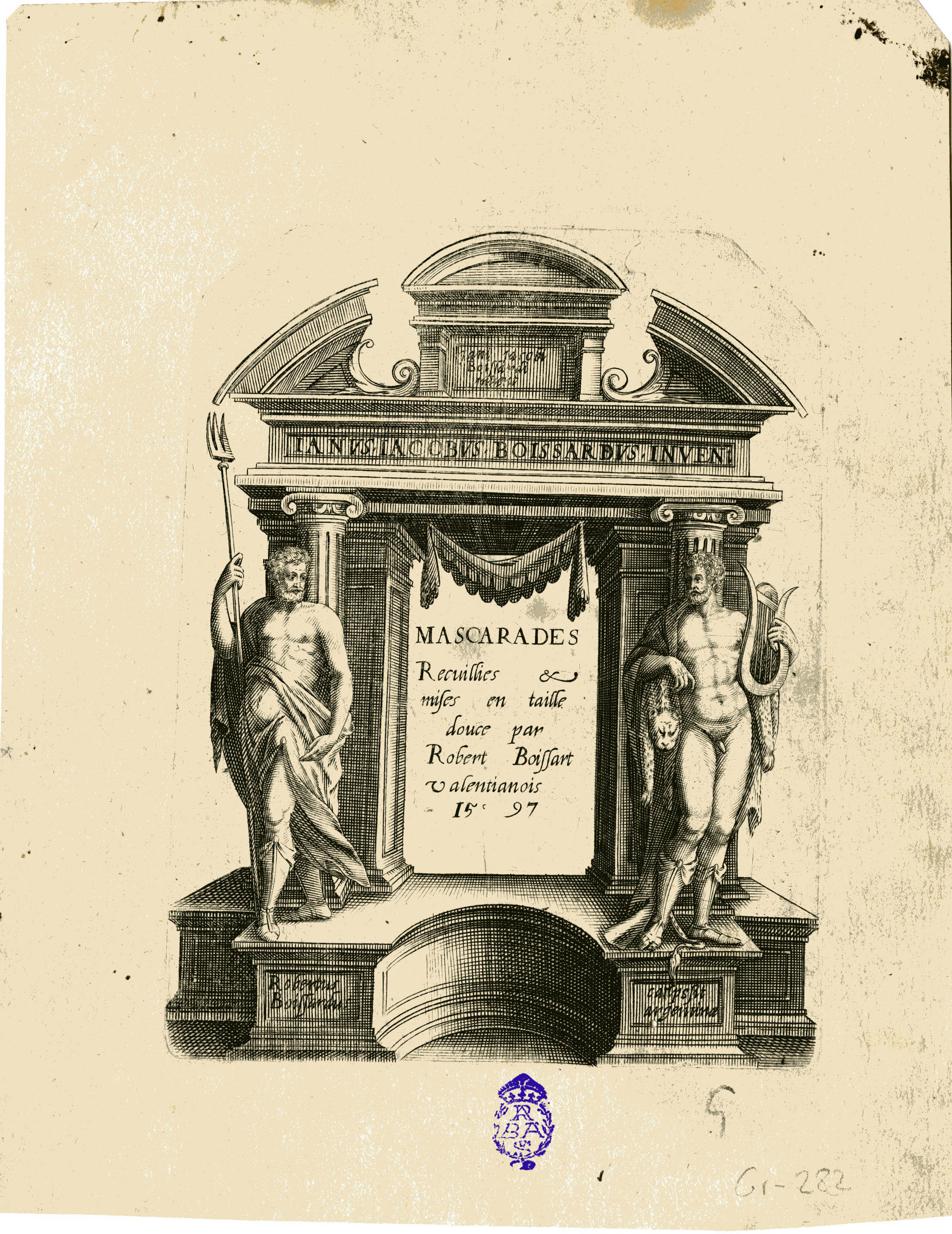 Fecha: [1597] • Nº Inventario: GR-0282 • Medidas: 1 estampa : talla dulce ; huella de la plancha 165 x 128 mm. • Técnica: