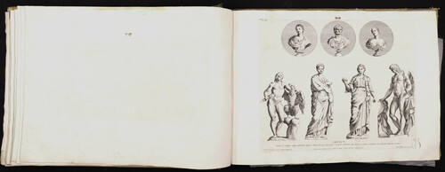 Identificación: Un busto masculino y dos femeninos y estatua de Zeus, Apolo y dos femeninas