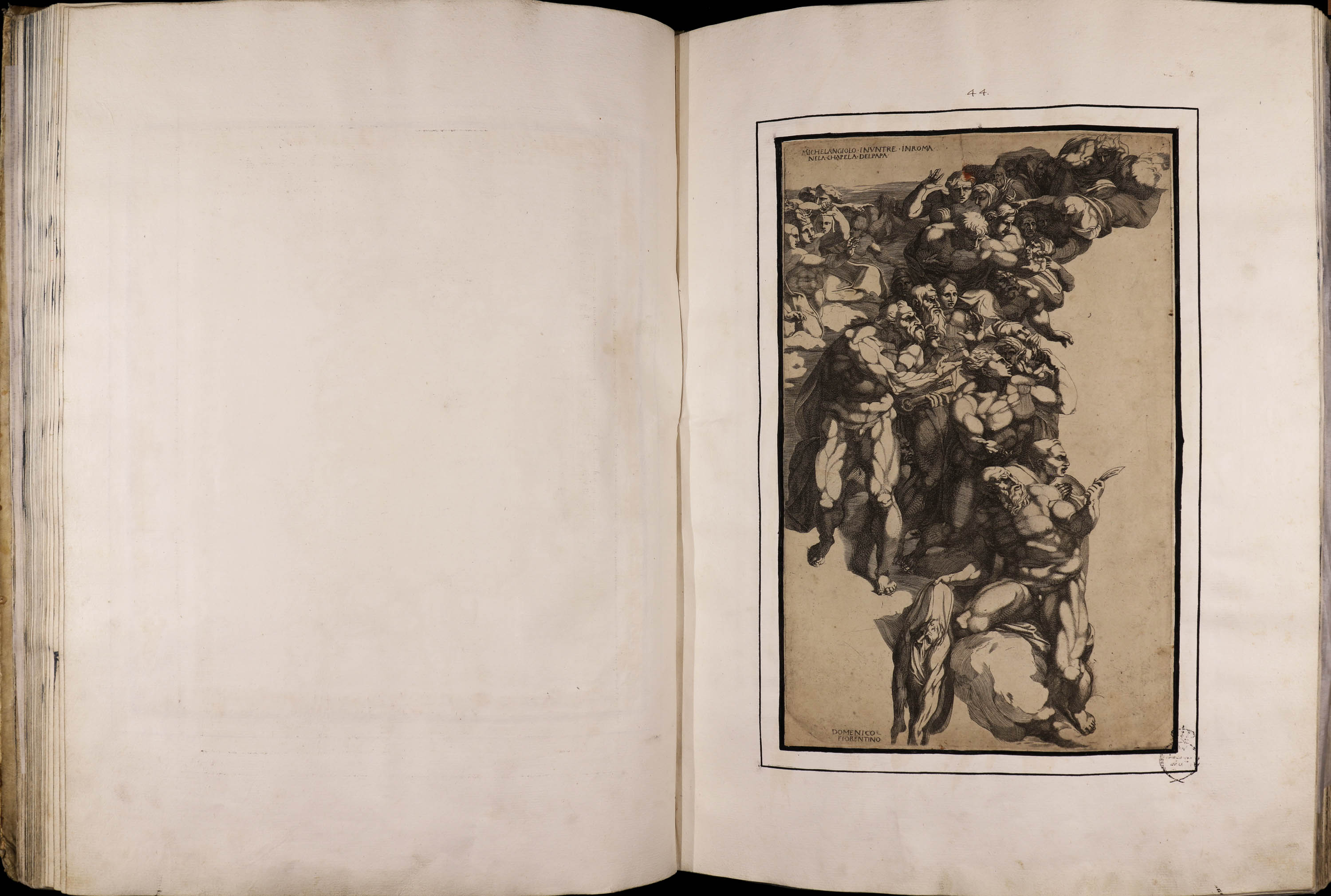 Inscripciones: En el ángulo superior izquierdo: Michelangiolo inventre in Roma / nela chapela del Papa, y en el ángulo inferior izquierdo: Domenico / Fiorentino.