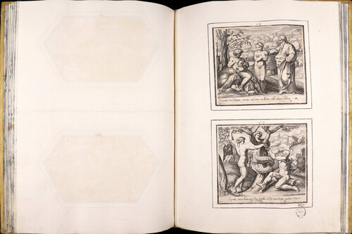 Inscripciones: Cun priuilegio S Ponta: Hominem procreat; mulierem ex Adami costa educit Genes II y monograma FVA (Francesco Villamena Asisi), también en el ángulo inferior izquierdo.