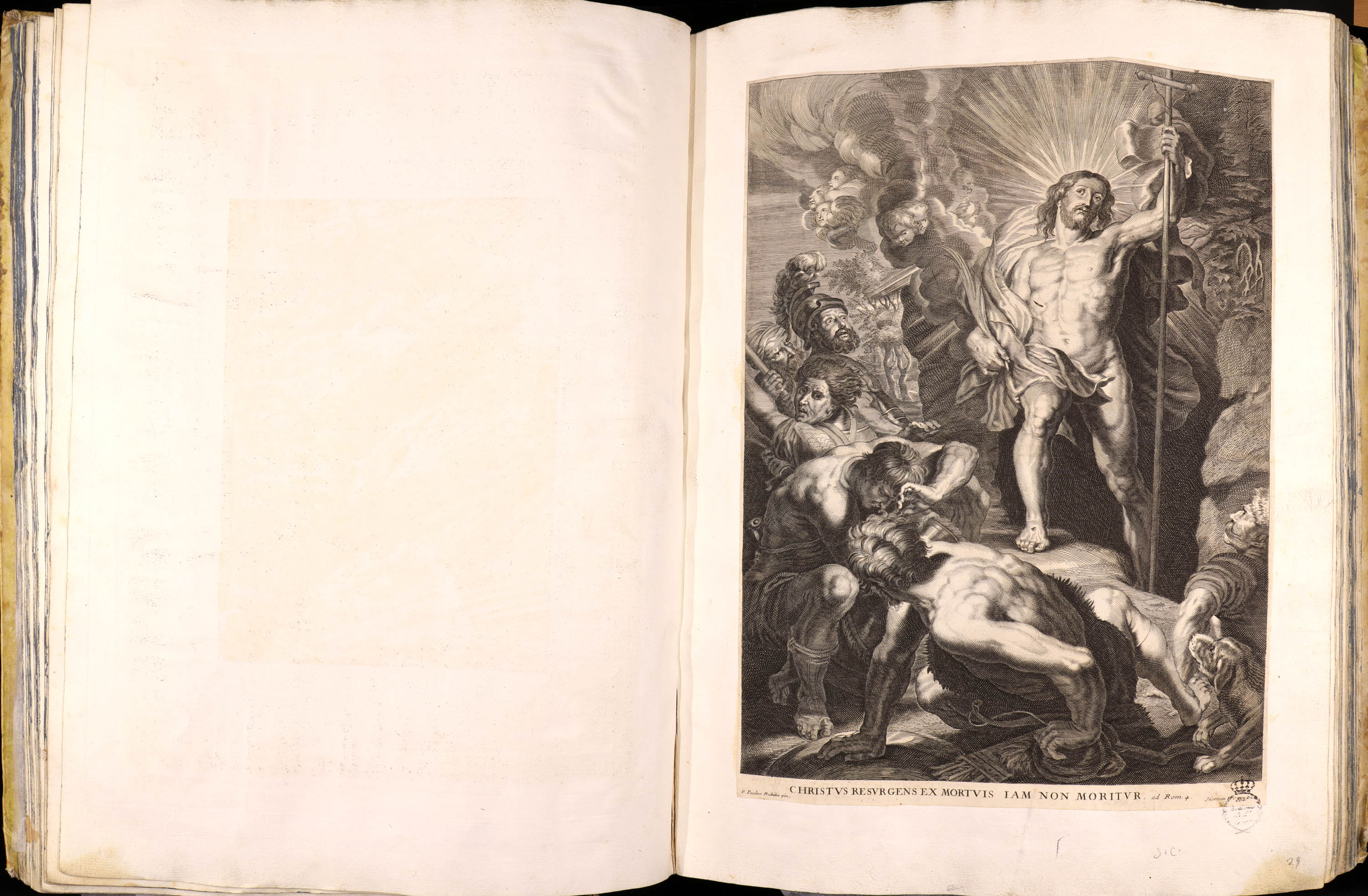 Inscripciones: Al pie: CHRISTVS RESVRGENS EX MORTIVS IAM NON MORITVR ad. Rom. 4.