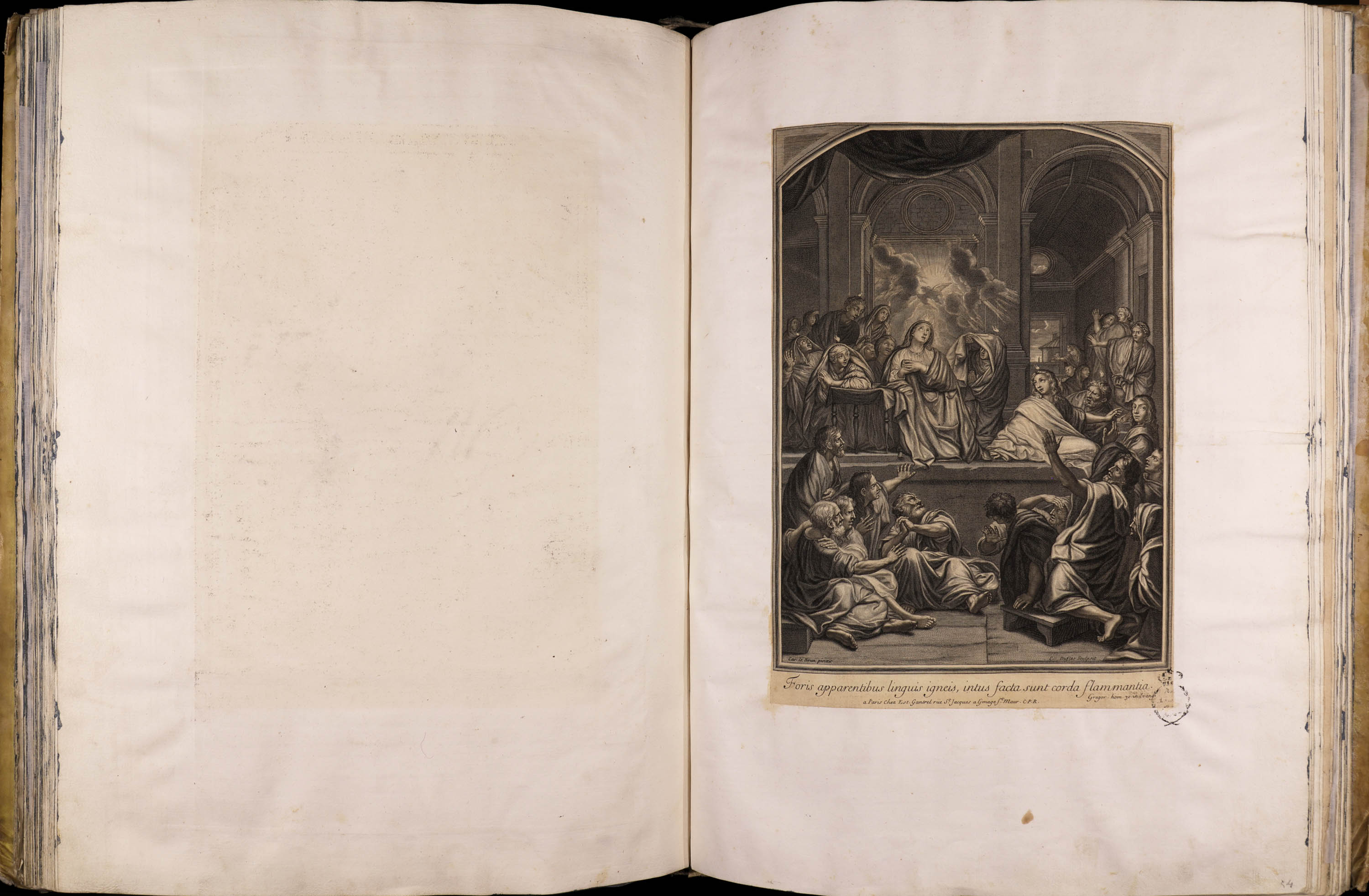 Al pie: Foris apparentibus linguis igneis, intus facta sunt corda flammantia. / Gregor. hom. 30 in Evnag. / a Paris chez. Est. Gantrel rüe S(t) Jacques al'jmage S(t) Maur. C. P. R.