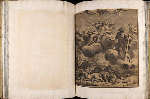 Identificación: Hércules, en presencia de Artemis, presenta a Zeus los monstruos y fieras derrotadas en sus trabajos