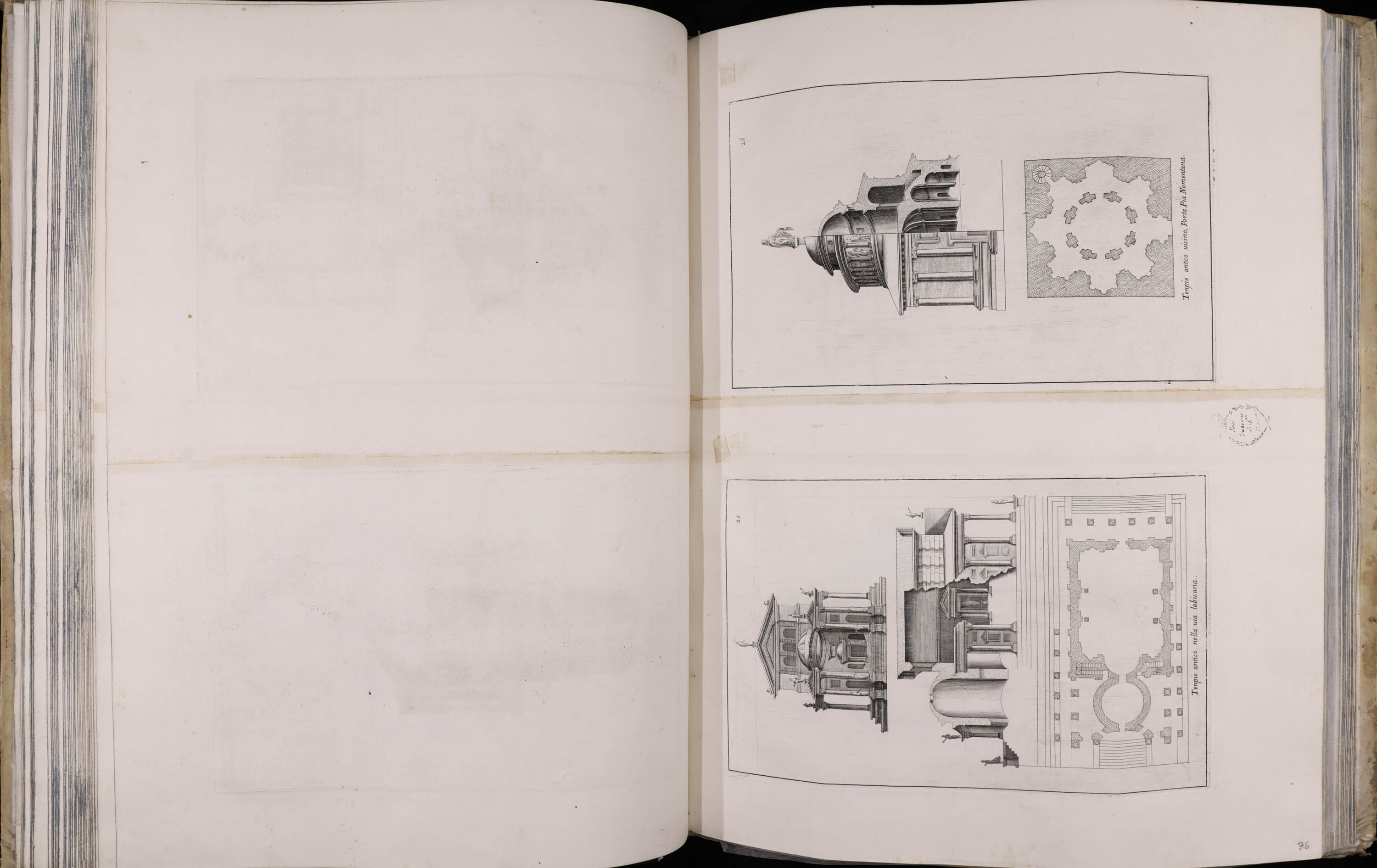 Identificación: Planta, alazado y sección de un templo antiguo en la vía Labicana