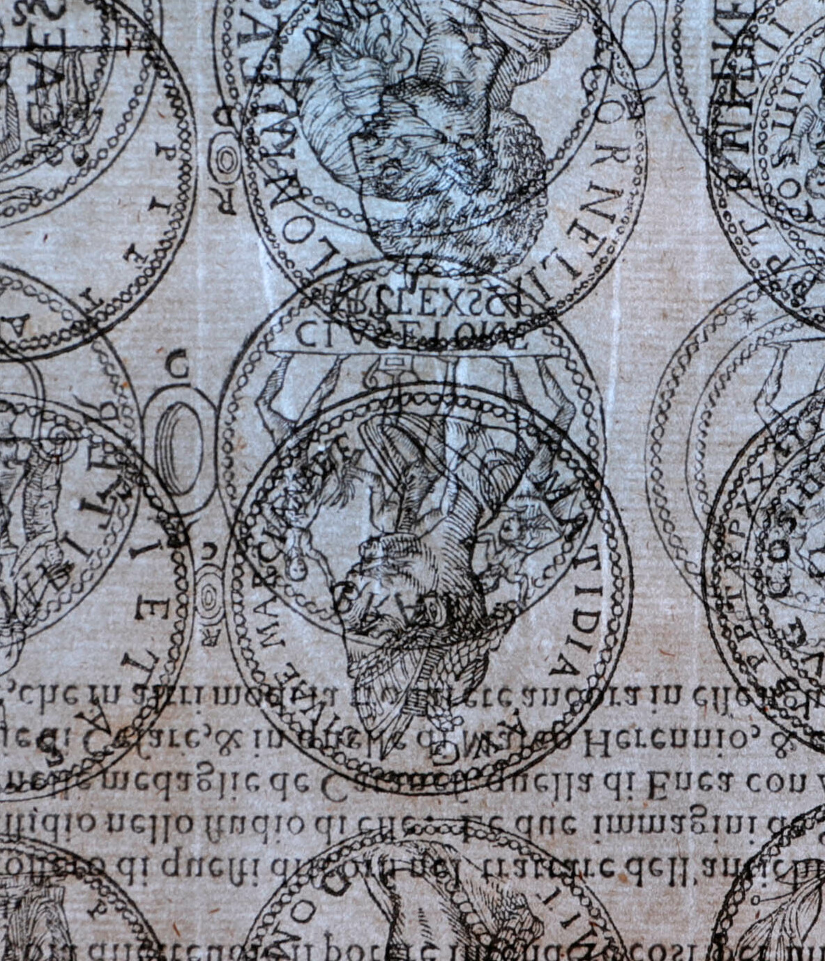 Segunda edición italiana que reproduce en realidad la primera edición de Roma de 1592 (impresa por Guglielmo Faciotto), cuyo principal responsable y traductor fue Dionigi Ottaviano Sada, de origen español, quien acrecentó respecto a la editio princeps española (Tarragona, 1587), con nuevos grabados xilográficos de monedas a partir de su propia colección numismática, así como de las de Fulvio Orsini, Lelio Pasqualini, Giovanni Battista della Porta y el P. Alfonso Chacón, como señala en la advertencia preliminar al lector. En 1592 aparecieron otras dos traducciones italianas anónimas más editadas, una en Roma por Ascanio y Girolamo Donangeli y otra en Venecia, que nunca fueron reeditadas.