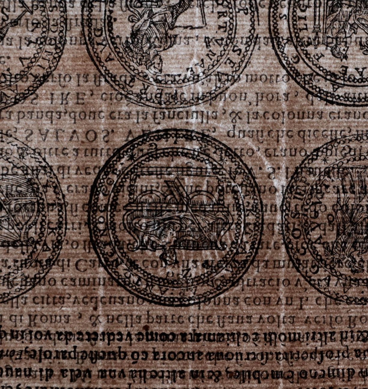Segunda edición italiana que reproduce en realidad la primera edición de Roma de 1592 (impresa por Guglielmo Faciotto), cuyo principal responsable y traductor fue Dionigi Ottaviano Sada, de origen español, quien acrecentó respecto a la editio princeps española (Tarragona, 1587), con nuevos grabados xilográficos de monedas a partir de su propia colección numismática, así como de las de Fulvio Orsini, Lelio Pasqualini, Giovanni Battista della Porta y el P. Alfonso Chacón, como señala en la advertencia preliminar al lector. En 1592 aparecieron otras dos traducciones italianas anónimas más editadas, una en Roma por Ascanio y Girolamo Donangeli y otra en Venecia, que nunca fueron reeditadas.