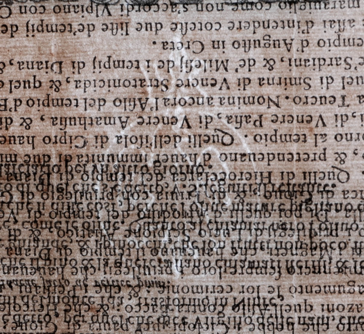 Segunda edición italiana que reproduce en realidad la primera edición de Roma de 1592 (impresa por Guglielmo Faciotto), cuyo principal responsable y traductor fue Dionigi Ottaviano Sada, de origen español, quien acrecentó respecto a la editio princeps española (Tarragona, 1587), con nuevos grabados xilográficos de monedas a partir de su propia colección numismática, así como de las de Fulvio Orsini, Lelio Pasqualini, Giovanni Battista della Porta y el P. Alfonso Chacón, como señala en la advertencia preliminar al lector. En 1592 aparecieron otras dos traducciones italianas anónimas más editadas, una en Roma por Ascanio y Girolamo Donangeli y otra en Venecia, que nunca fueron reeditadas.