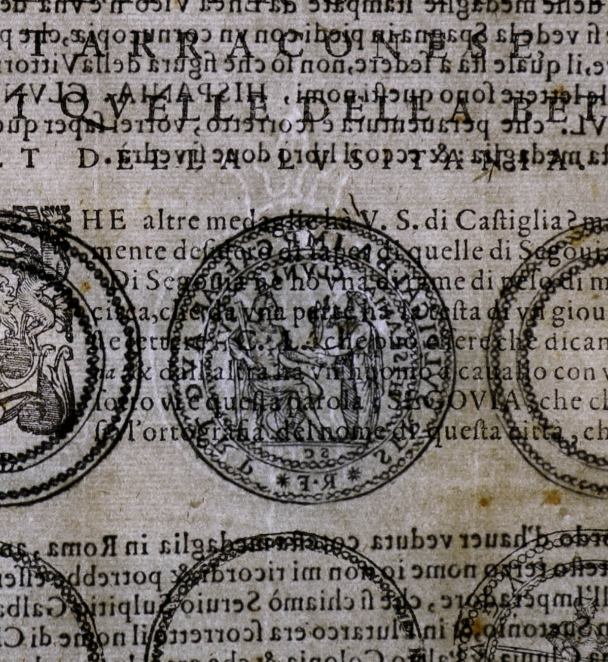 Segunda edición italiana que reproduce en realidad la primera edición de Roma de 1592 (impresa por Guglielmo Faciotto), cuyo principal responsable y traductor fue Dionigi Ottaviano Sada, de origen español, quien acrecentó respecto a la editio princeps española (Tarragona, 1587), con nuevos grabados xilográficos de monedas a partir de su propia colección numismática, así como de las de Fulvio Orsini, Lelio Pasqualini, Giovanni Battista della Porta y el P. Alfonso Chacón, como señala en la advertencia preliminar al lector. En 1592 aparecieron otras dos traducciones italianas anónimas más editadas, una en Roma por Ascanio y Girolamo Donangeli y otra en Venecia, que nunca fueron reeditadas.