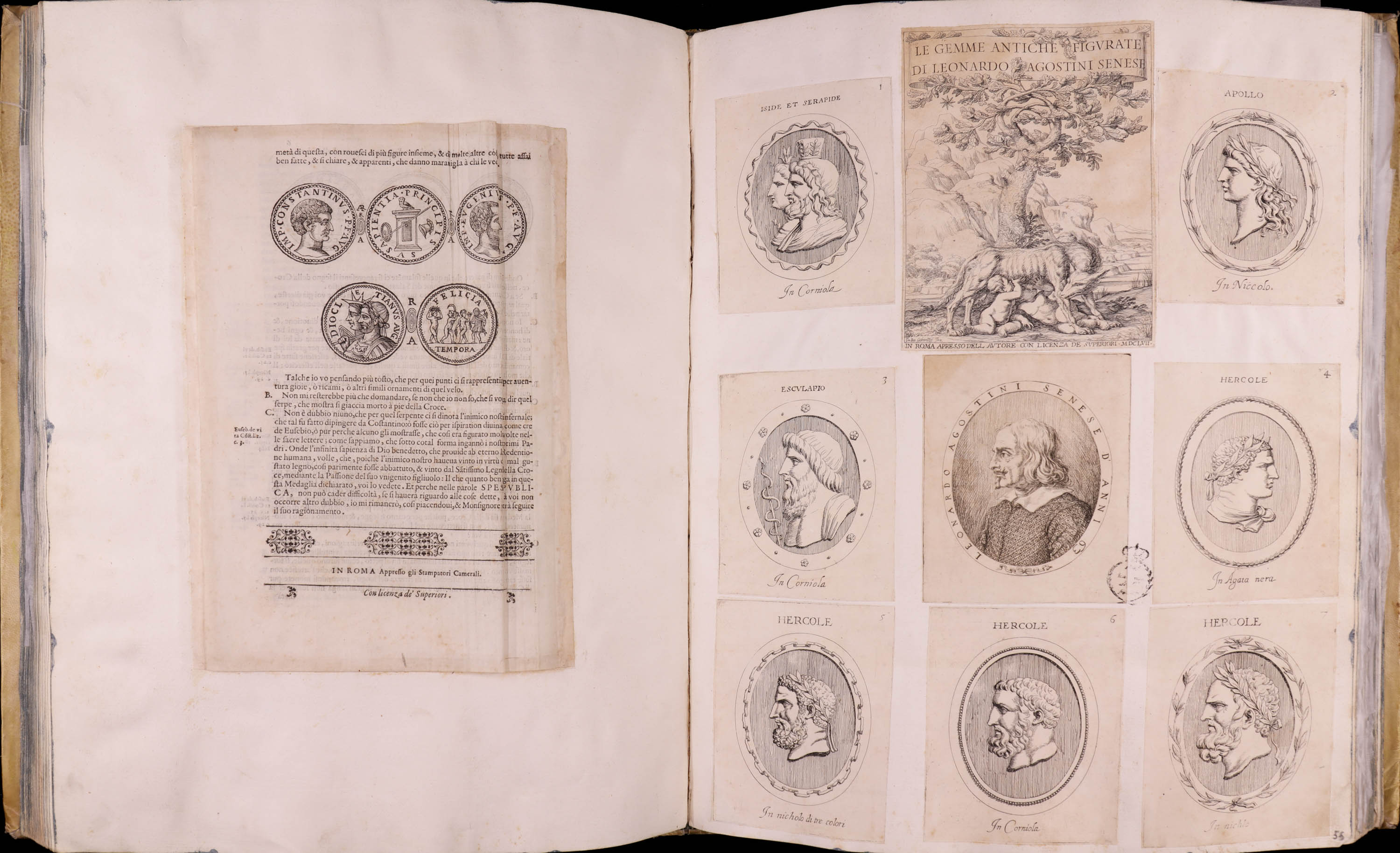 Primera edición del primer volumen de dos (incompleto, faltan las primeras hojas de la dedicatoria al papa Alejandro VII, advertencia al lector e índice de las láminas), que recoge la colección de camafeos y gemas del cardenal Francesco Barberini en 214 aguafuertes.
