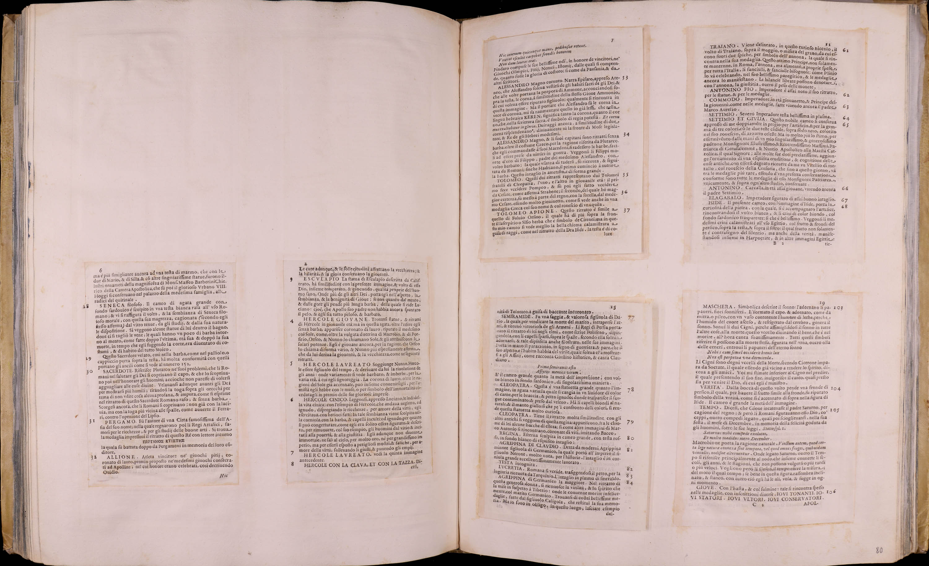 Leonardo Agostini a las estampas en la primera edición del primer volumen de dos (incompleto, faltan las primeras hojas de la dedicatoria al papa Alejandro VII, advertencia al lector e índice de las láminas), que recoge la colección de camafeos y gemas del cardenal Francesco Barberini en 214 aguafuertes.