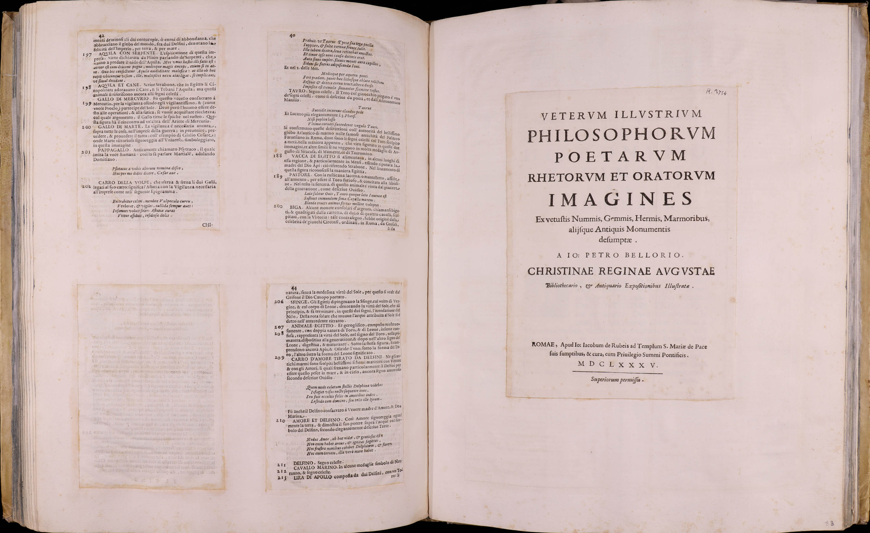 Leonardo Agostini a las estampas en la primera edición del primer volumen de dos (incompleto, faltan las primeras hojas de la dedicatoria al papa Alejandro VII, advertencia al lector e índice de las láminas), que recoge la colección de camafeos y gemas del cardenal Francesco Barberini en 214 aguafuertes.