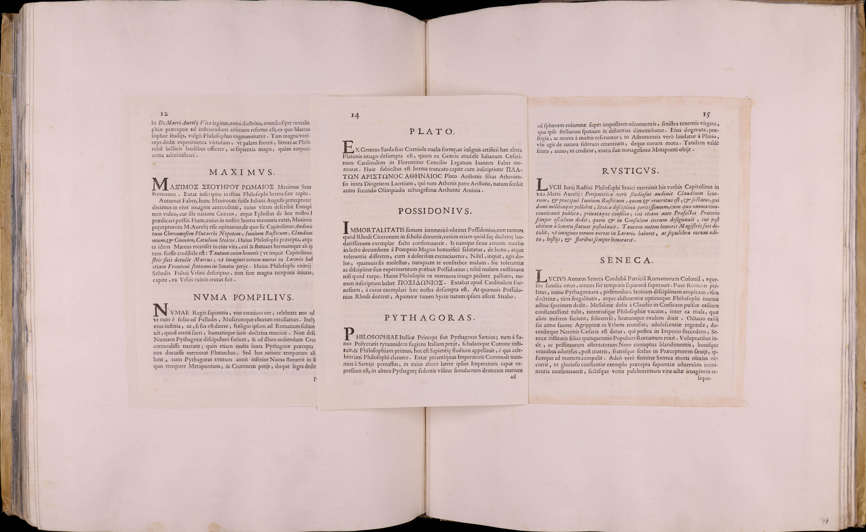 Inscripciones: PLATO; POSSIDONIVS; PYTHAGORAS