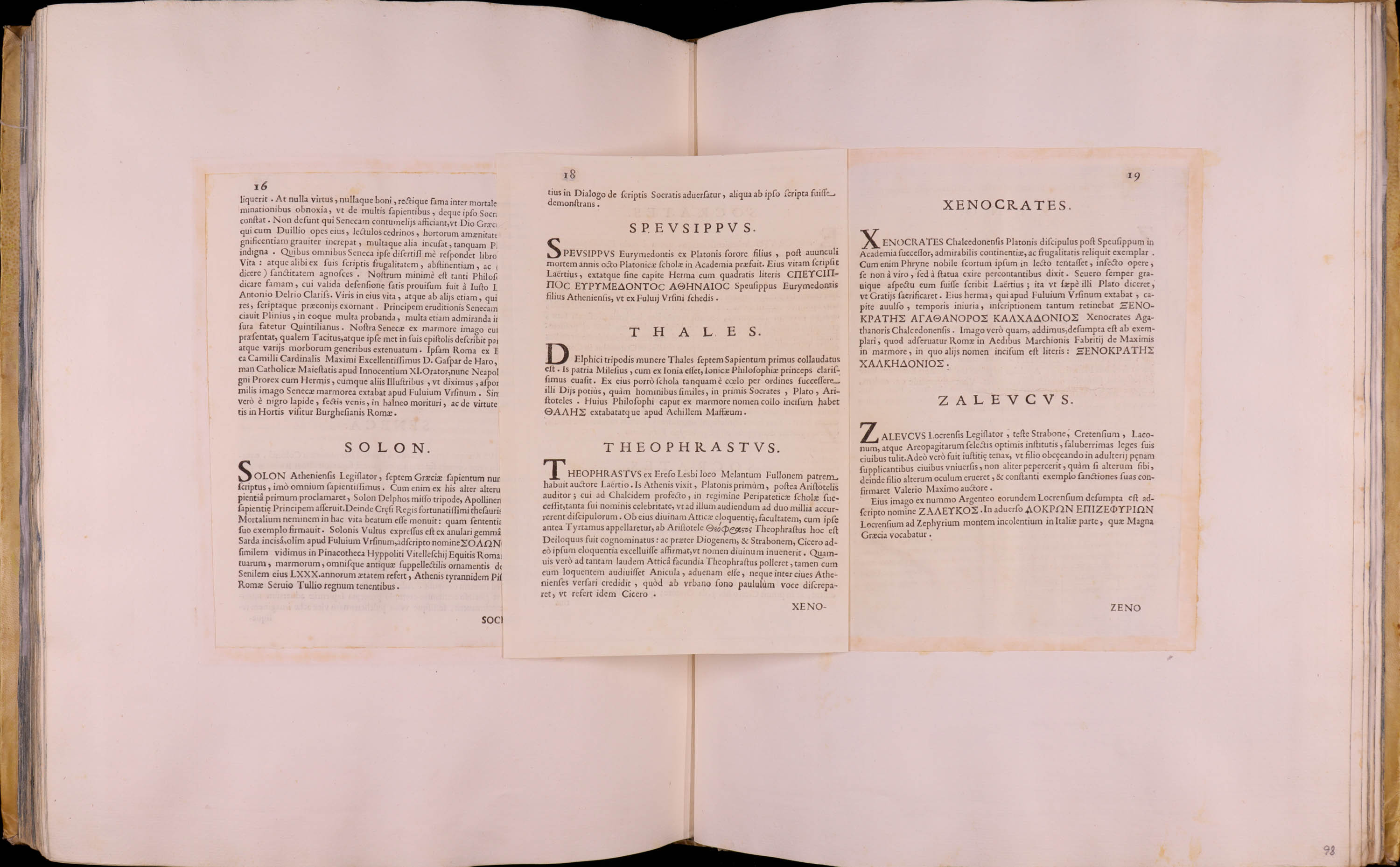 Inscripciones: SPEVSIPPVS; THALES; TEHOPHRASTVS