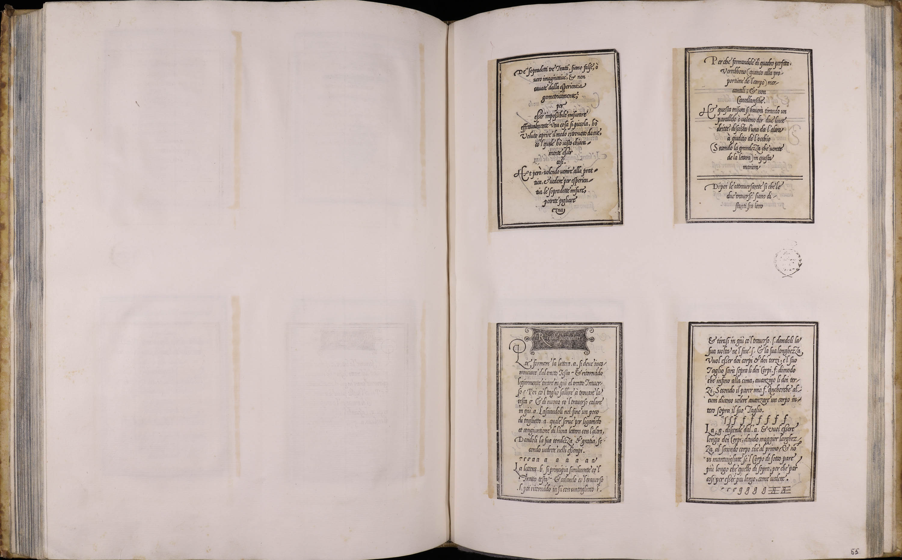 Observaciones: Forma parte del tomo Muestras de letras / Muestras / de / caracteres / Italianos y / Franceses formado por Juan Guerrero en Roma.
