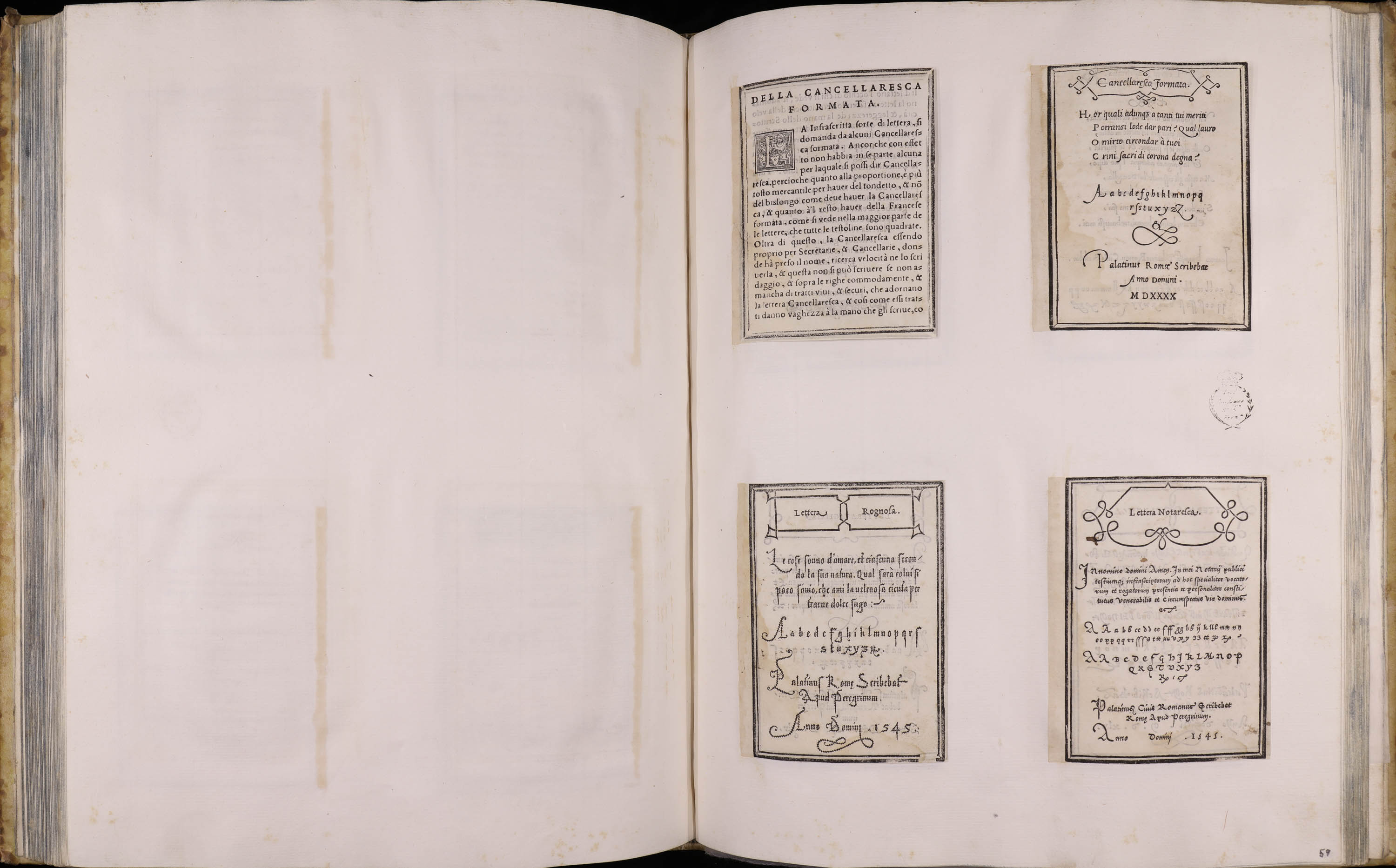 Observaciones: Forma parte del tomo Muestras de letras / Muestras / de / caracteres / Italianos y / Franceses formado por Juan Guerrero en Roma.