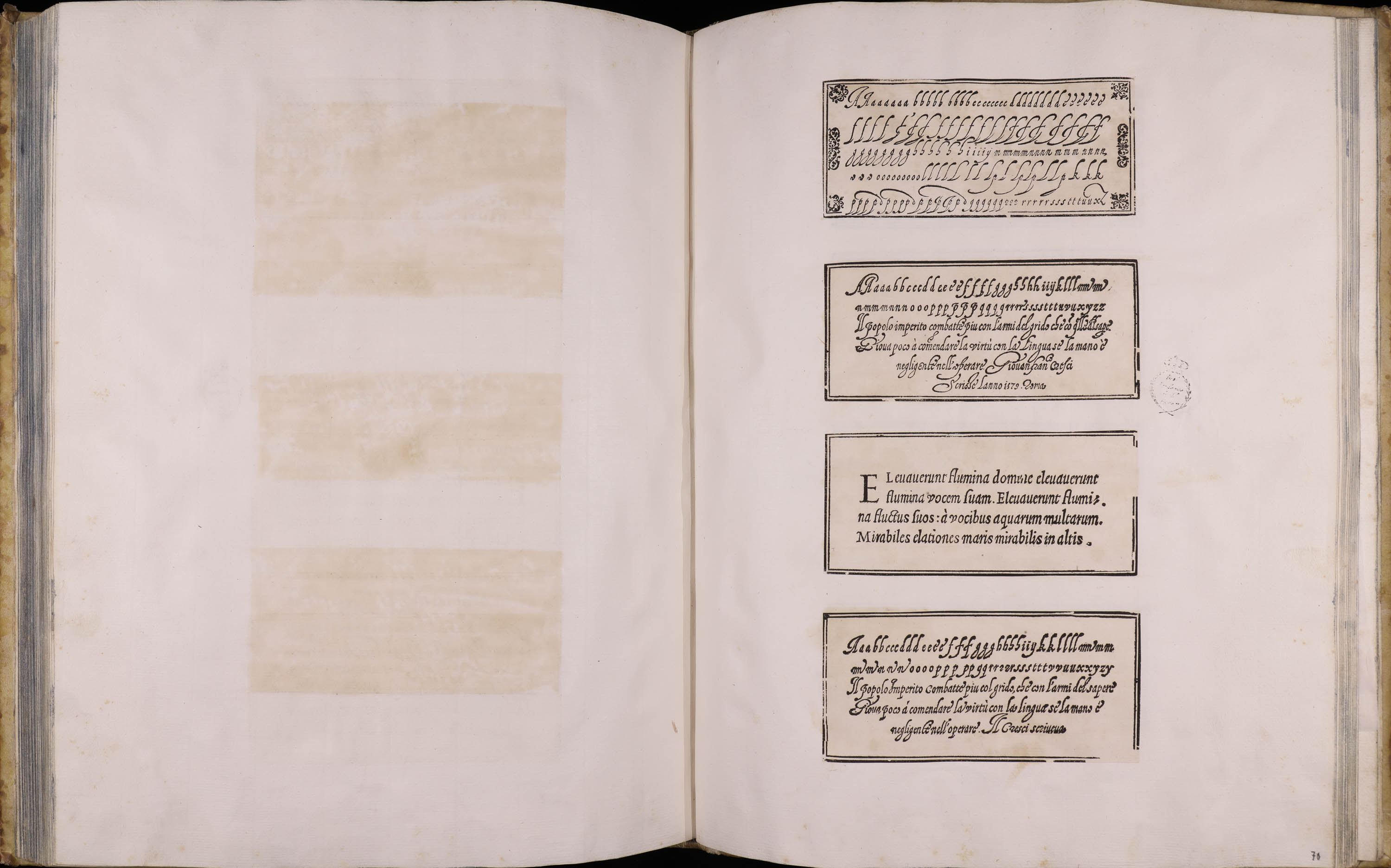 Observaciones: Forma parte del tomo Muestras de letras / Muestras / de / caracteres / Italianos y / Franceses formado por Juan Guerrero en Roma.