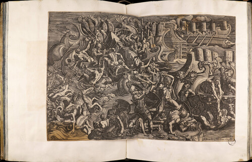 Inscripciones: En la zona inferior central: I·B·MANTVANVS / SCULPTOR·1538, y, en el ángulo inferior derecho: Io: Jacomo Rossi formis Romae 1648 alla Pace