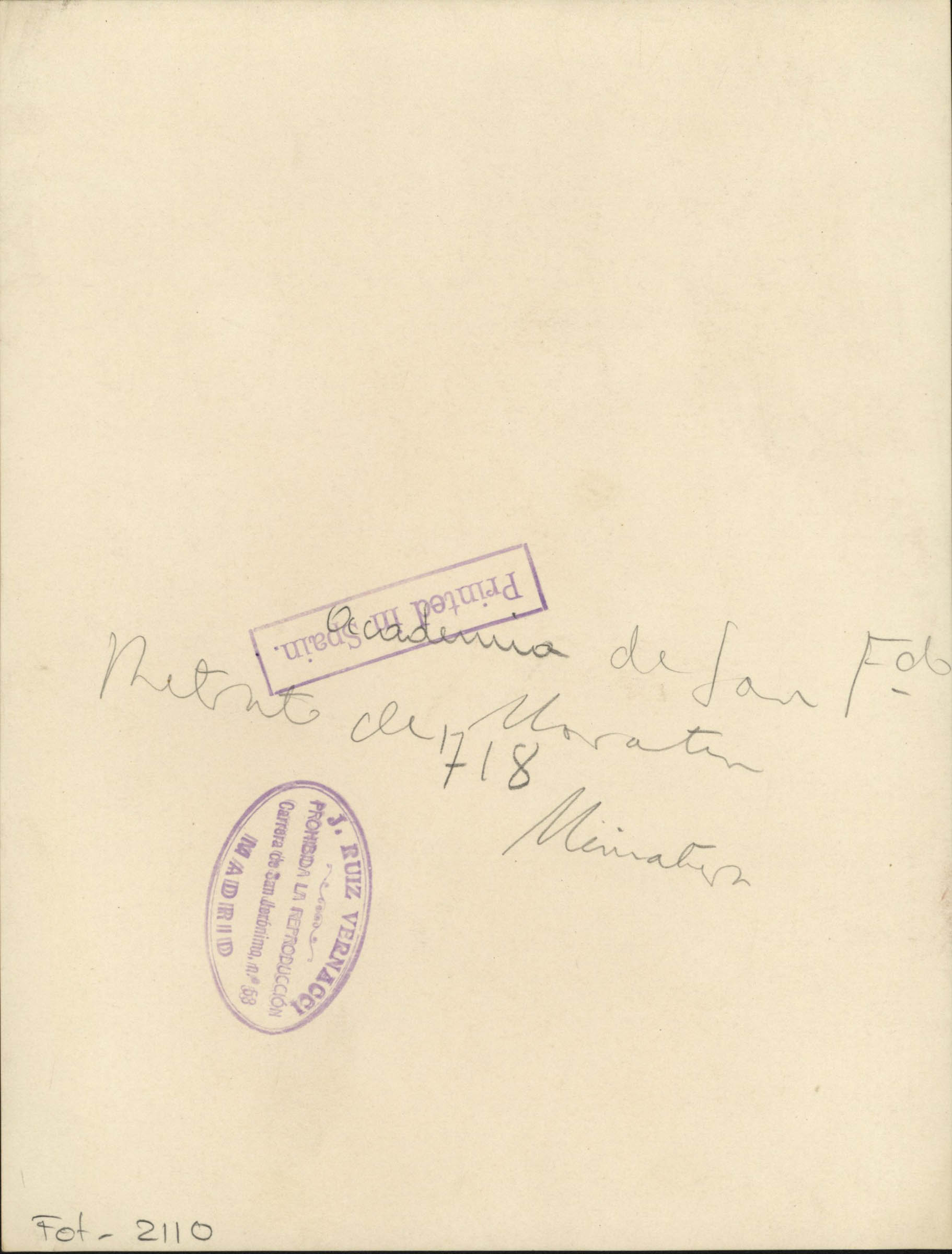 Observaciones: Esta miniatura, donada a la Academia por Manuel García de la Prada se conserva con el núm. 0831