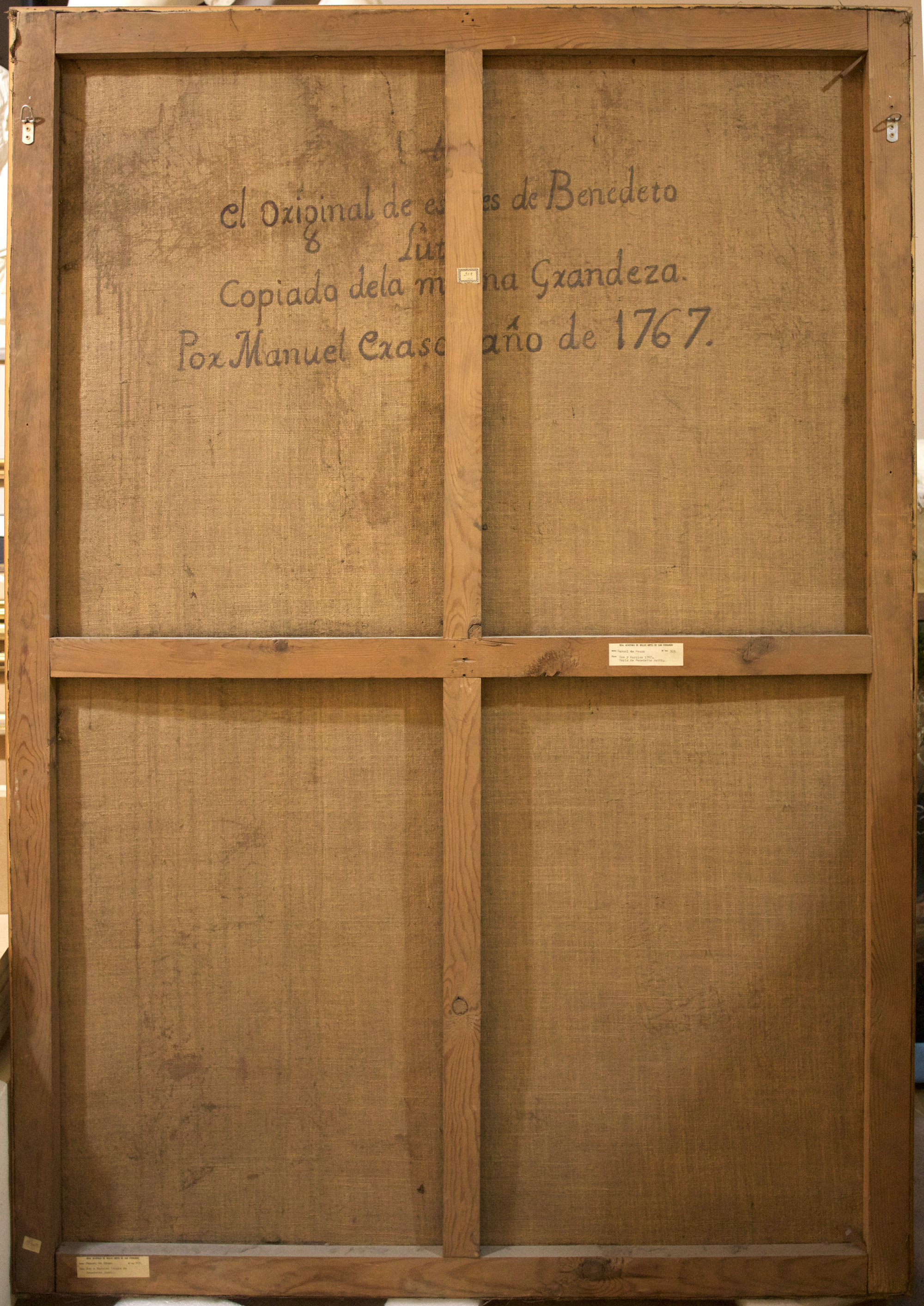Inscripciones: Detrás, sobre el lienzo: "El original de este es de Benedeto Lutti / Copiado de la misma Grandeza. Por Manuel de Eraso año de 1767."