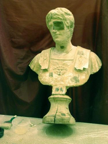 Observaciones: La restauración del busto en yeso difiere visiblemente de la que tiene actualmente el original en mármol